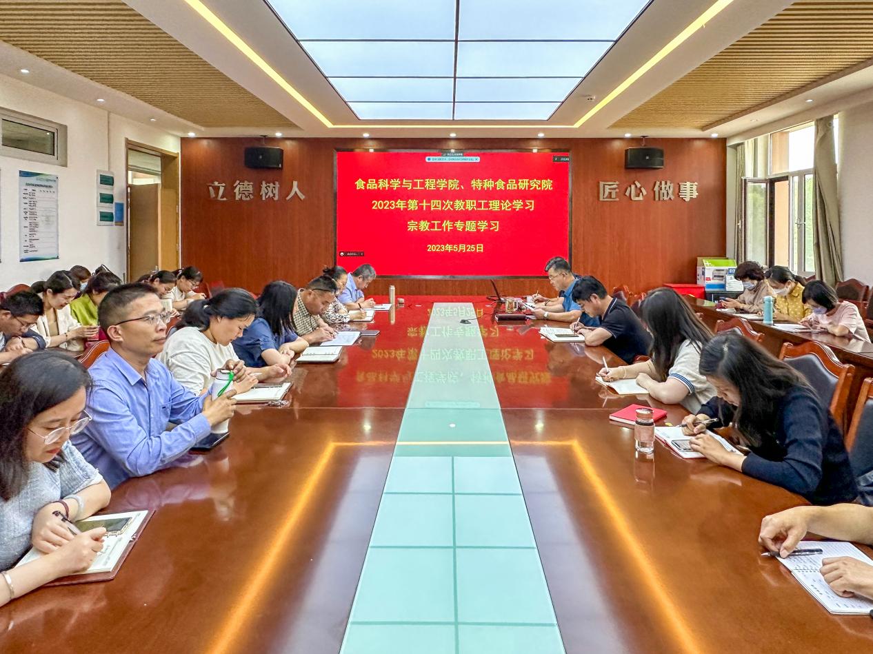 5月25日,beat365在线体育官网、特种食品研究院召开教职工理论学习2023年第十四次集体学习会议,专题学习全国宗教工作会议精神,会议由学院党委书记车广杰主持。