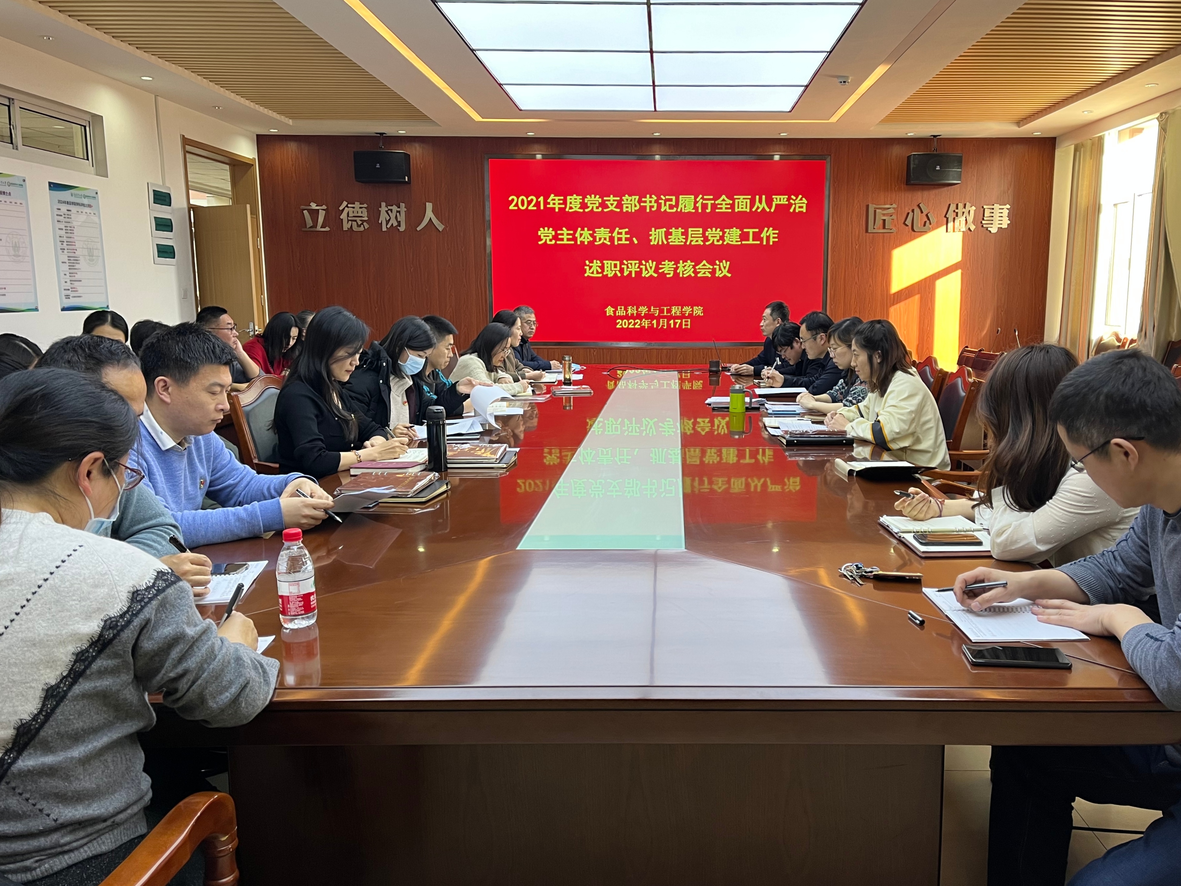 1月17日,beat365在线体育官网召开2021年度党支部书记履行全面从严治党责任暨抓基层党建工作述职评议考核会议。学院党委班子成员、科级以上干部、各党支部支委会成员参加。会议由学院党委书记宋伟主持。