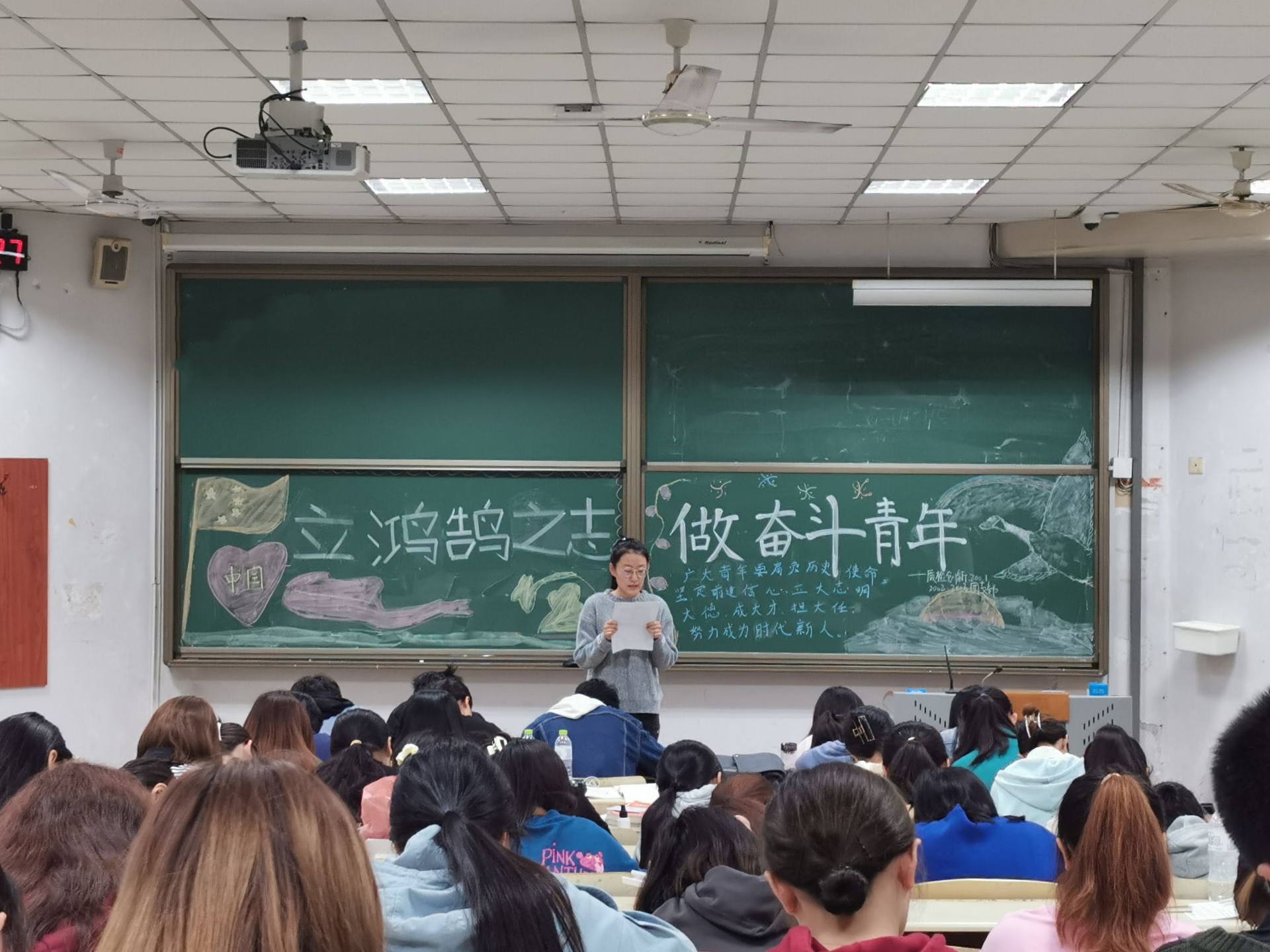 为激励同学们坚定理想信念,增强爱国主义精神,10月10日,beat365在线体育官网在教学区开展“立鸿鹄之志,做奋斗青年”主题政治学习。学院2020级全体同学积极参加。