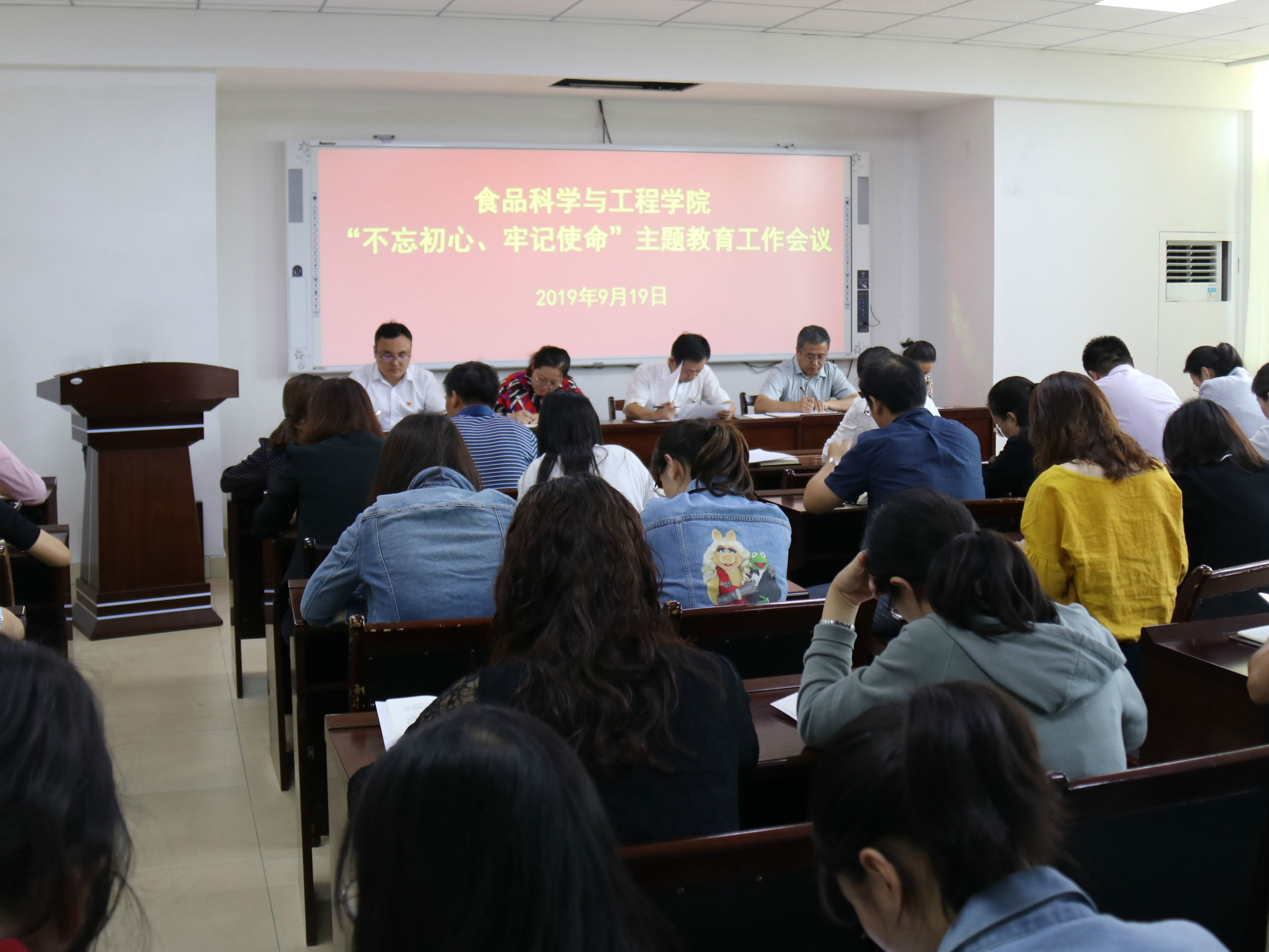 9月19日,beat365在线体育官网于食品楼会议室召开“不忘初心、牢记使命”主题教育工作会议。学院副院长孙庆杰,党委副书记宋伟,副院长陈海华以及学院全体师生党员参加。会议由宋伟主持。