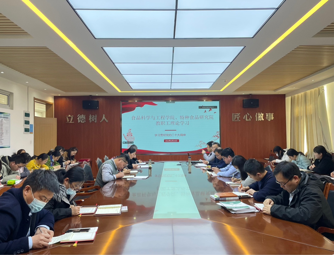 2月16日,beat365在线体育官网、特种食品研究院在食品楼310召开教职工理论学习会议,专题学习贯彻党的二十大精神,学院全体教职工参加会议,会议由党委书记车广杰主持。
