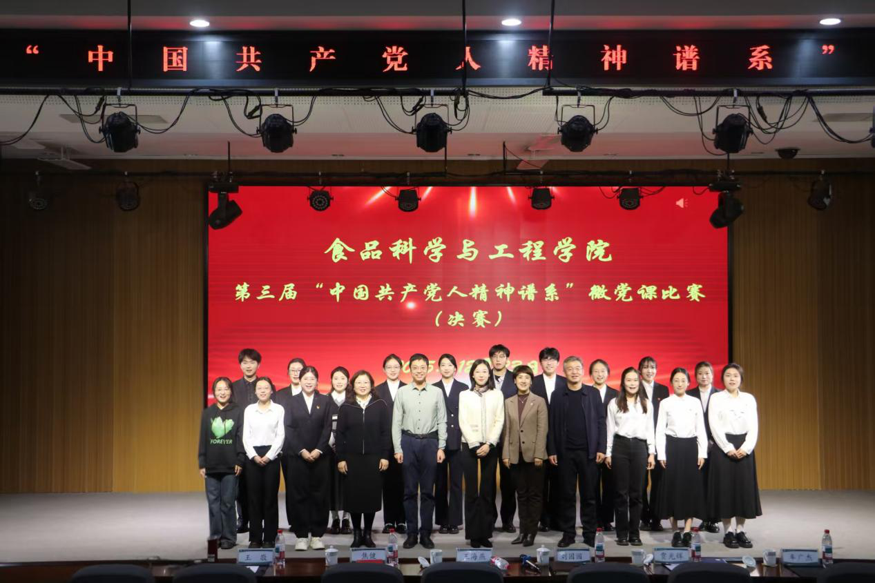 12月23日,beat365在线体育官网于学术会馆第二报告厅举办第三届中国共产党人精神谱系微党课决赛,并同期举行第三届“‘食’代先锋理论宣讲团”授旗仪式。学校党委组织部、学生工作处、研究生处、团委、食品学院等单位有关领导出席并担任评委,学院学生党员、入党积极分子到场观摩学习。