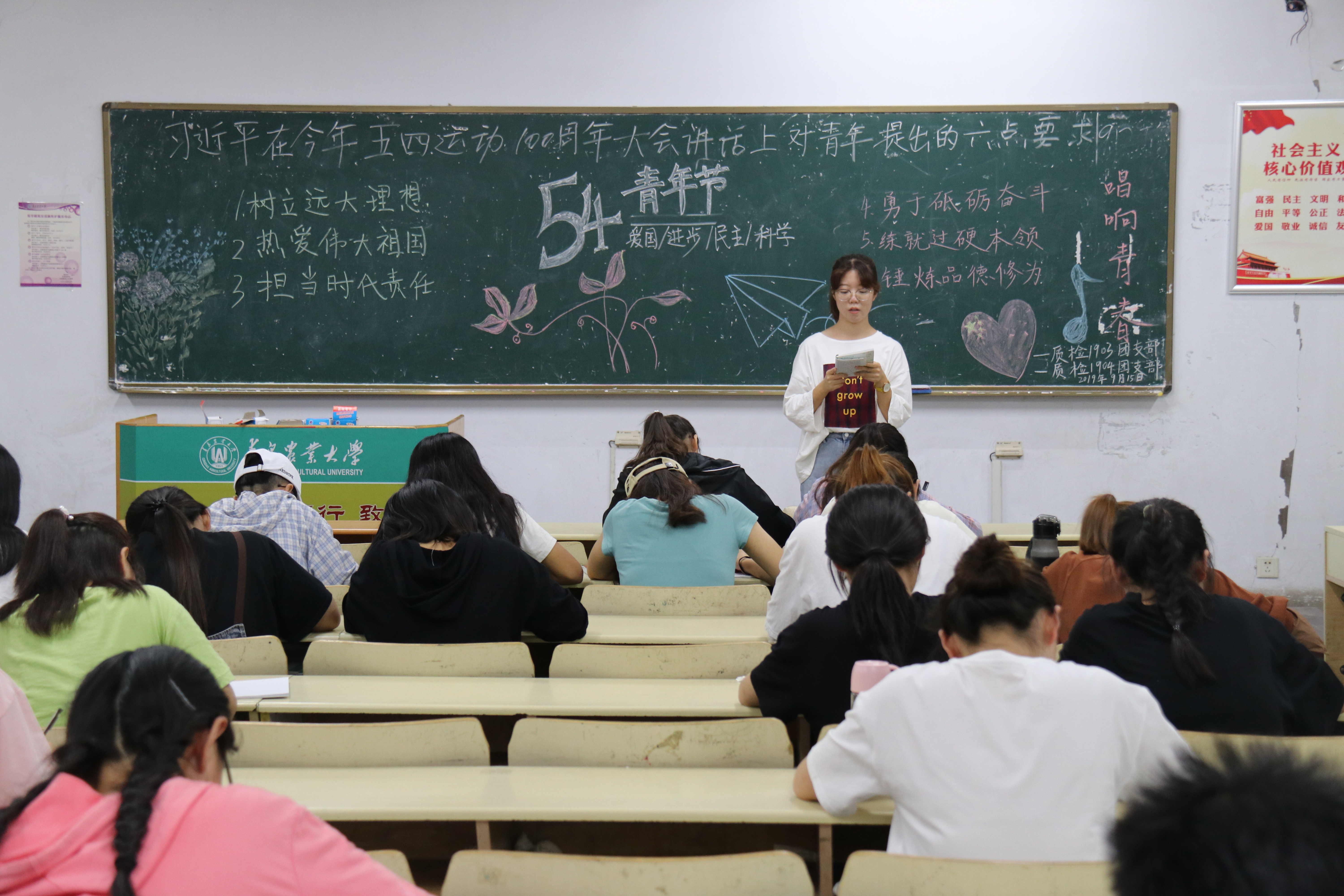 9月15日,食品学院于教学楼开展“习近平总书记在纪念五四运动100周年大会上的讲话”主题政治学习。学院2018级、2019级全体学生参加。各班主讲人带领各班级学习习近平对新时代青年提出的六点要求:要树立远大理想、热爱伟大祖国、担当时代责任、勇于砥砺奋斗、练就过硬本领、锤炼品德修为。食科1803班郝琪臣讲到,五四运动高举起爱国主义伟大旗帜,激发了追求真理、追求进步的伟大觉醒,以全民族的搏击培育了永久奋斗的传统,我们时代青年要热爱祖国,坚信奋斗是青春最靓丽的景色。