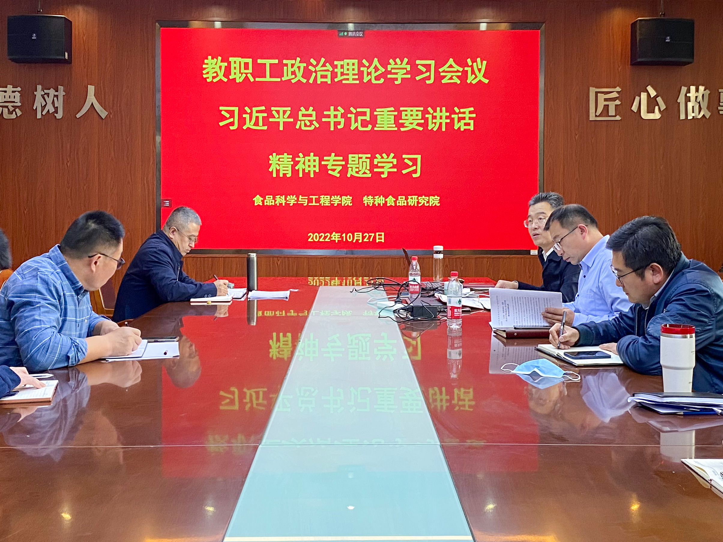 10月27日,beat365在线体育官网、特种食品研究院在食品楼310开展学习习近平总书记在参加广西代表团讨论时的重要讲话精神专题学习,会议由党委书记车广杰主持。