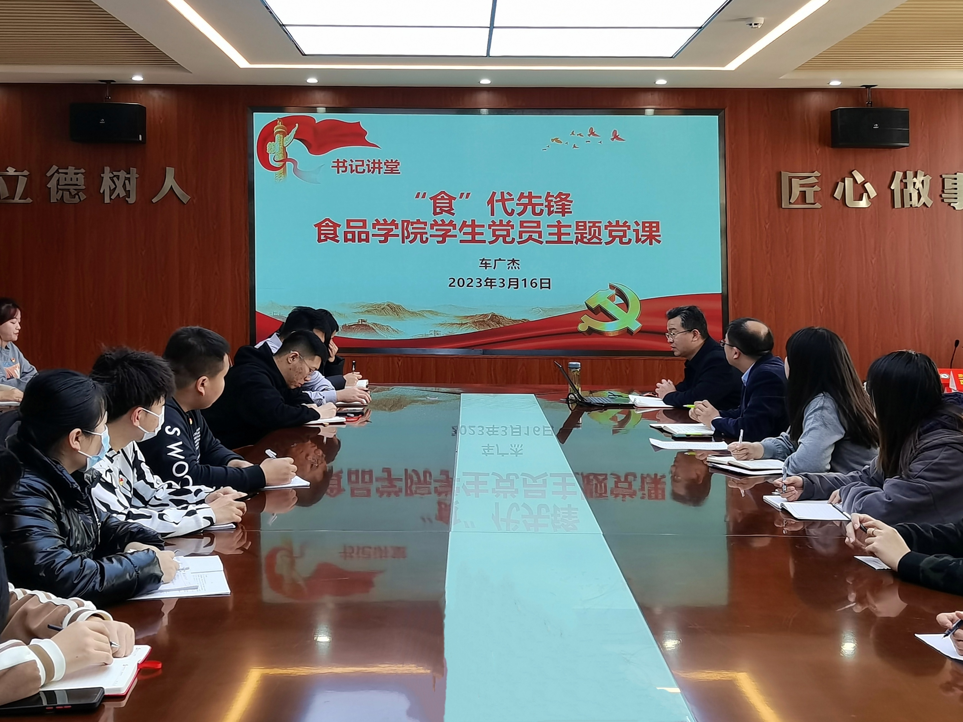 3月16日,beat365在线体育官网开展“食”代先锋书记讲堂活动,邀请学院党委书记车广杰为学生党员开讲“书记讲堂”第一讲。