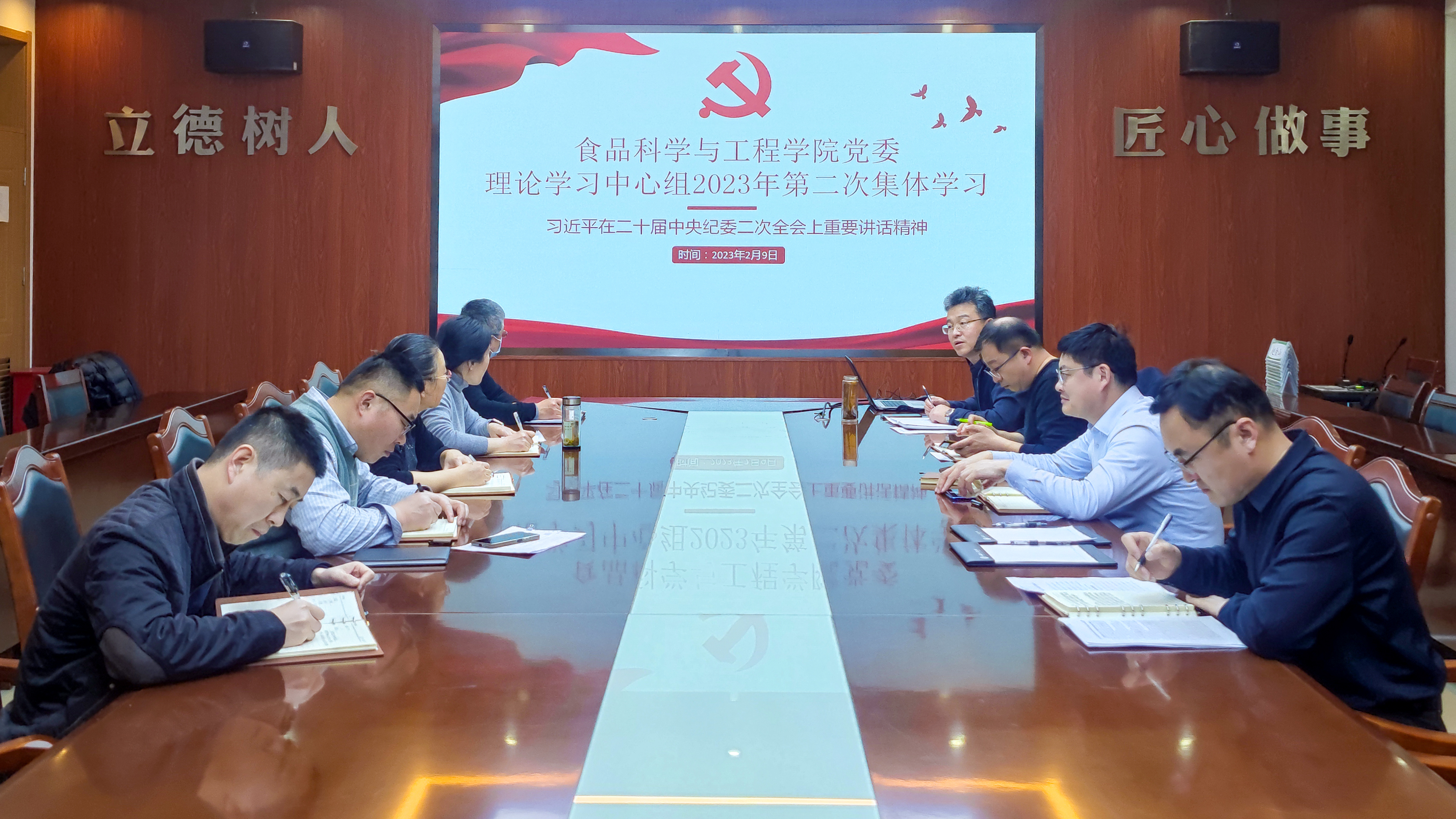 2月9日,beat365在线体育官网党委理论学习中心组在食品楼310开展2023年第二次集体学习。党委书记车广杰主持会议,中心组全体成员参加。