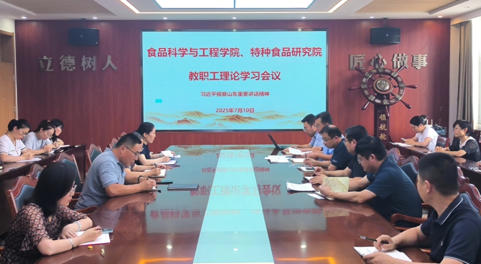 7月10日,beat365在线体育官网、特种食品研究院召开教职工理论学习会议,集体学习习近平总书记视察山东重要讲话指示精神。会议由学院党委书记车广杰主持,全体教职工参加。