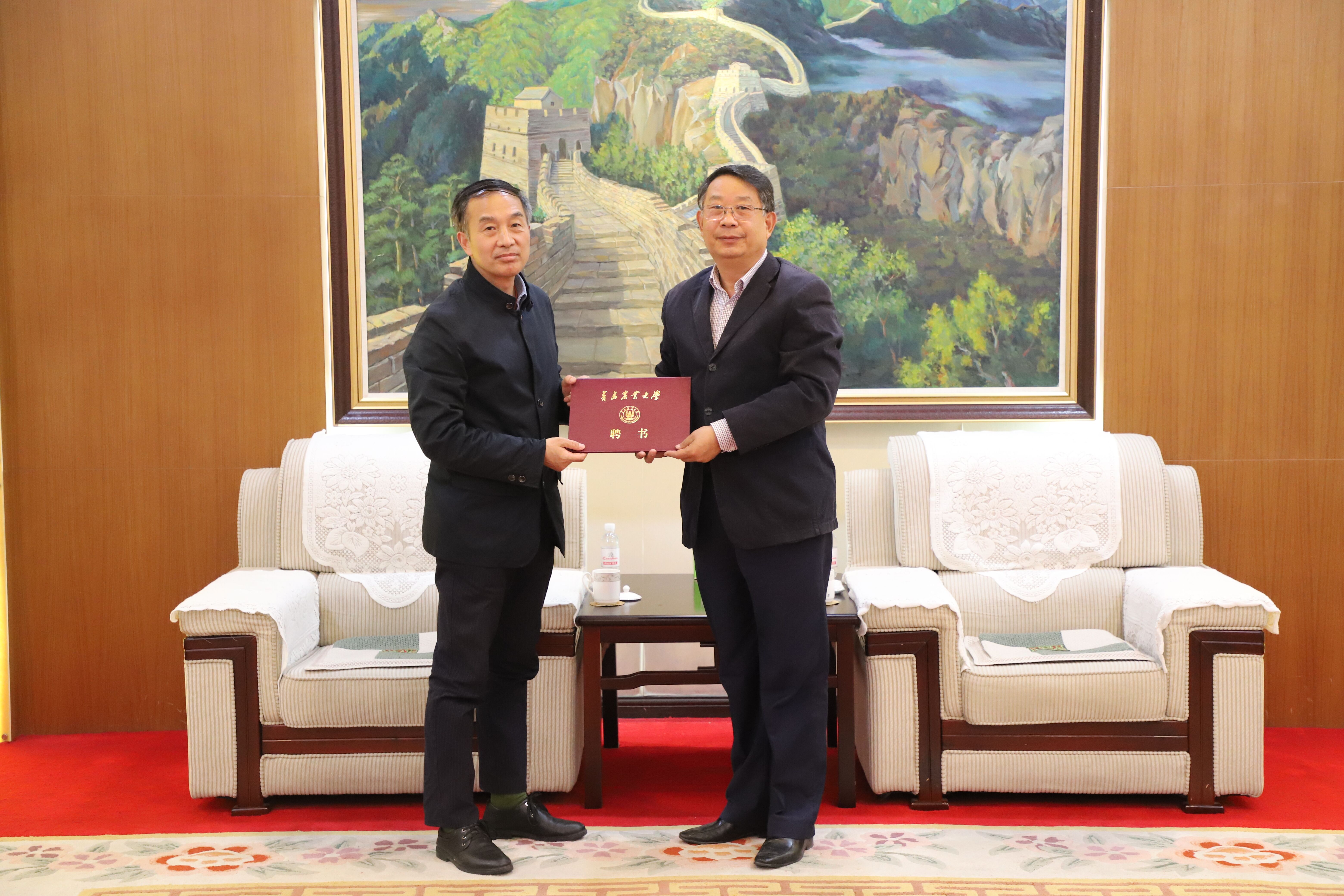 李宝笃对金征宇一行的来访表示欢迎,从办学历史、人才培养、科技创新等方面介绍了学校基本情况。并为金征宇颁发青岛农业大学特聘教授聘书。副校长赵金山陪同金征宇一行参观了青岛特种食品研究院。