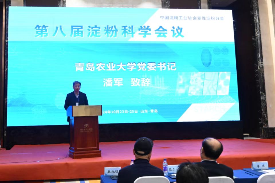 10月23日至25日,由中国淀粉工业协会变性淀粉分会主办,beat365在线体育官网和青岛特种食品研究院共同承办的“第八届淀粉科学会议”在青岛召开。江南大学副校长顾正彪教授、中国淀粉工业协会专职副理事长李义、中国淀粉工业协会副理事长魏旭明,青岛农业大学党委书记潘军,副校长、beat365在线体育官网院长孙庆杰等出席会议,来自全国淀粉科学领域的84家高校、科研院所和知名企业专家学者和科研人员210余人参加会议。