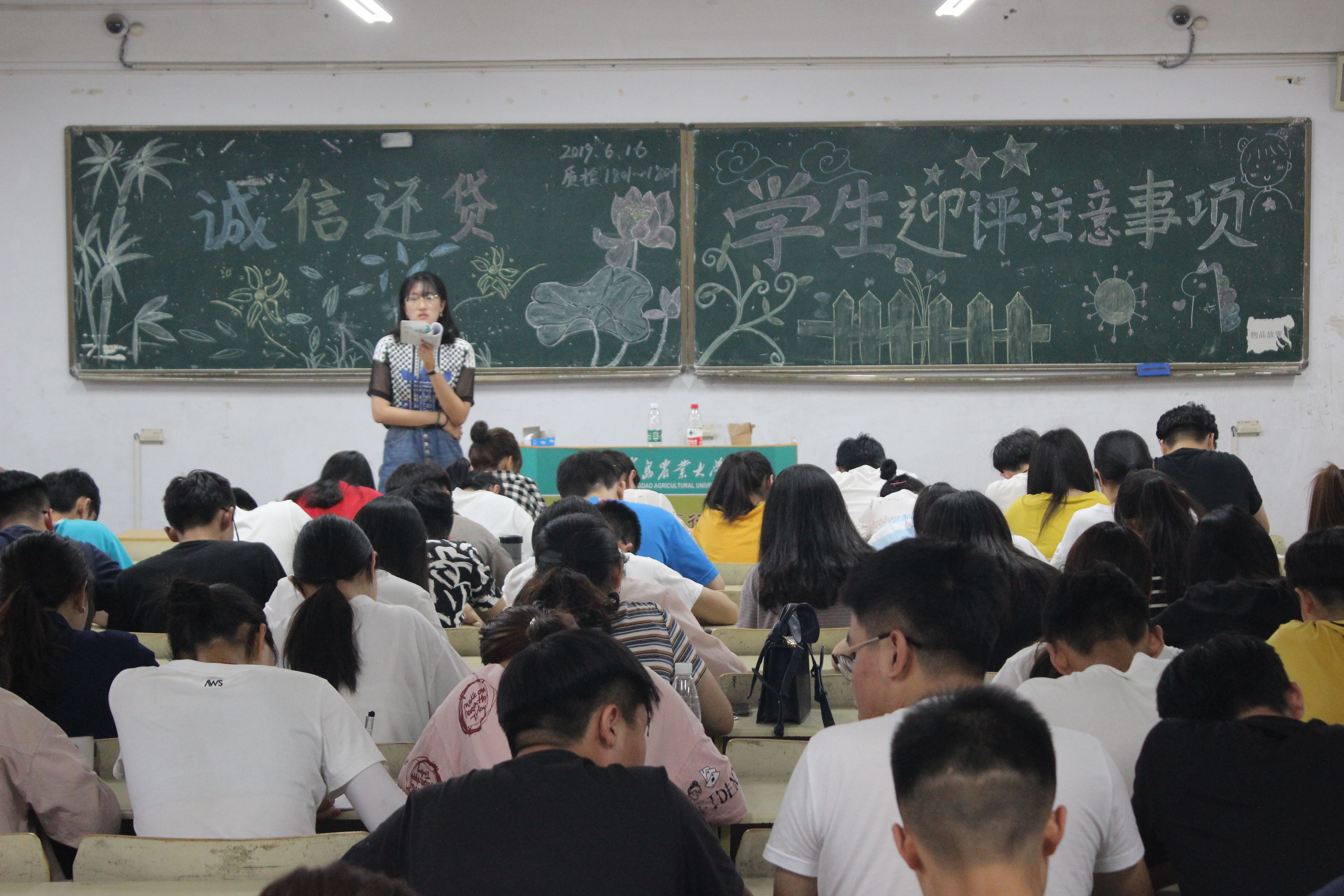 6月16日,beat365在线体育官网于教学区开展“诚信还贷”和“学生迎评注意事项”主题班会。学院2017、2018级全体学生积极参与。