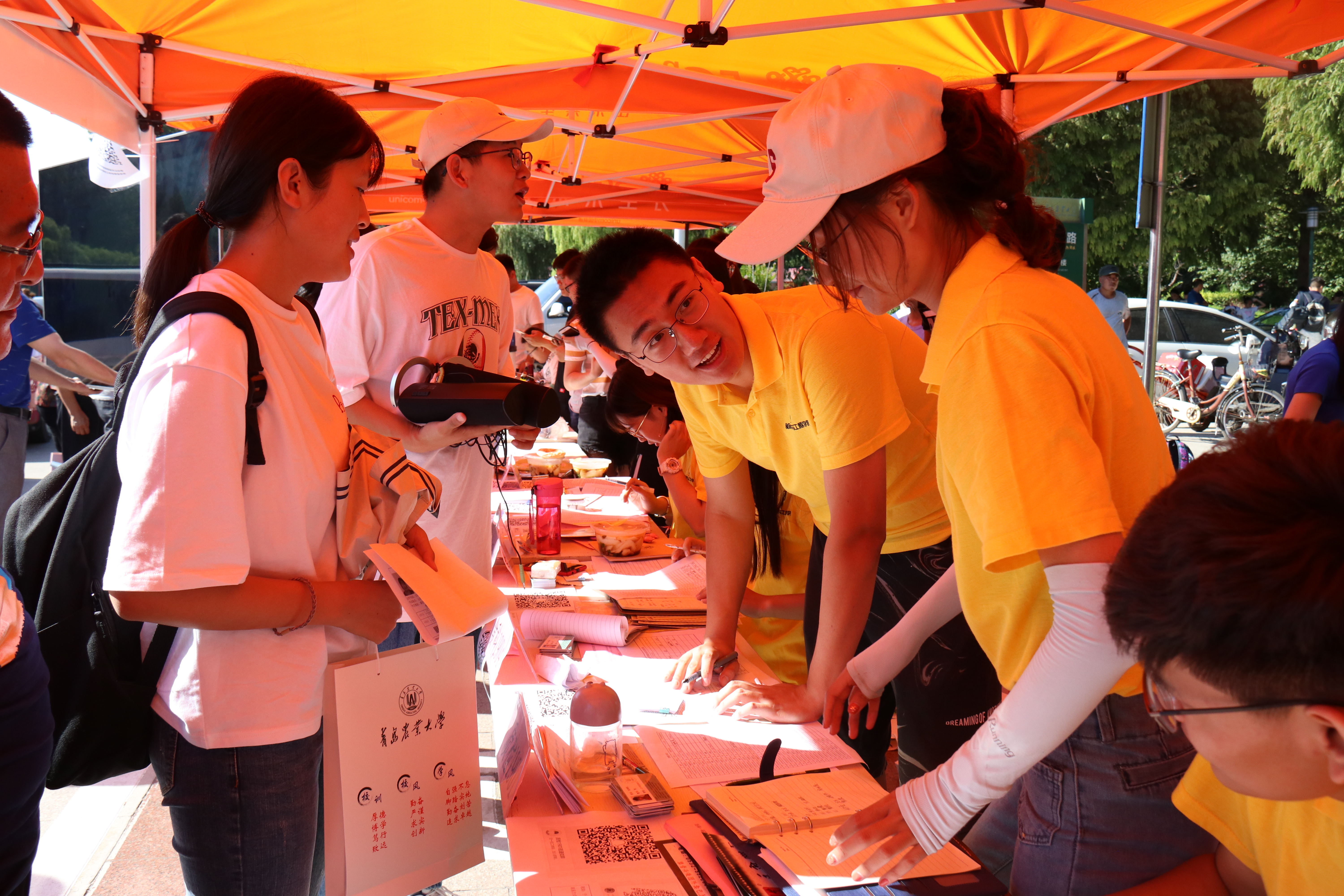 8月31日至9月1日,beat365在线体育官网于虹子广场迎接2019级入学新生。校党委书记李宝笃、校长宋希云、副校长刘新民、副校长单连岱、食品学院党委副书记宋伟来到学院迎新现场,指导工作。迎新现场大屏幕播放的学院简介、教授风采、新生入学须知等视频和2019届考研光荣榜等展板吸引了新生与家长驻足观看。现场,新生和家长还一同品尝了学院自制的曲奇、月饼、葡萄酒和啤酒。