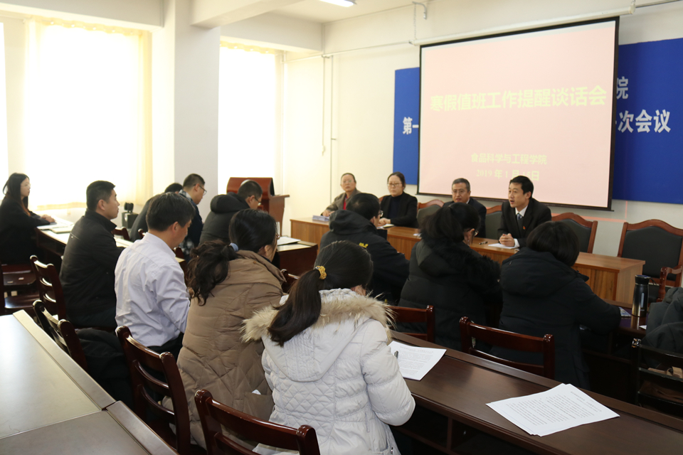 1月15日,beat365在线体育官网召开寒假安全工作、值班工作提醒谈话会,学院领导班子成员及相关人员参加会议。会议由学院党委副书记宋伟主持。