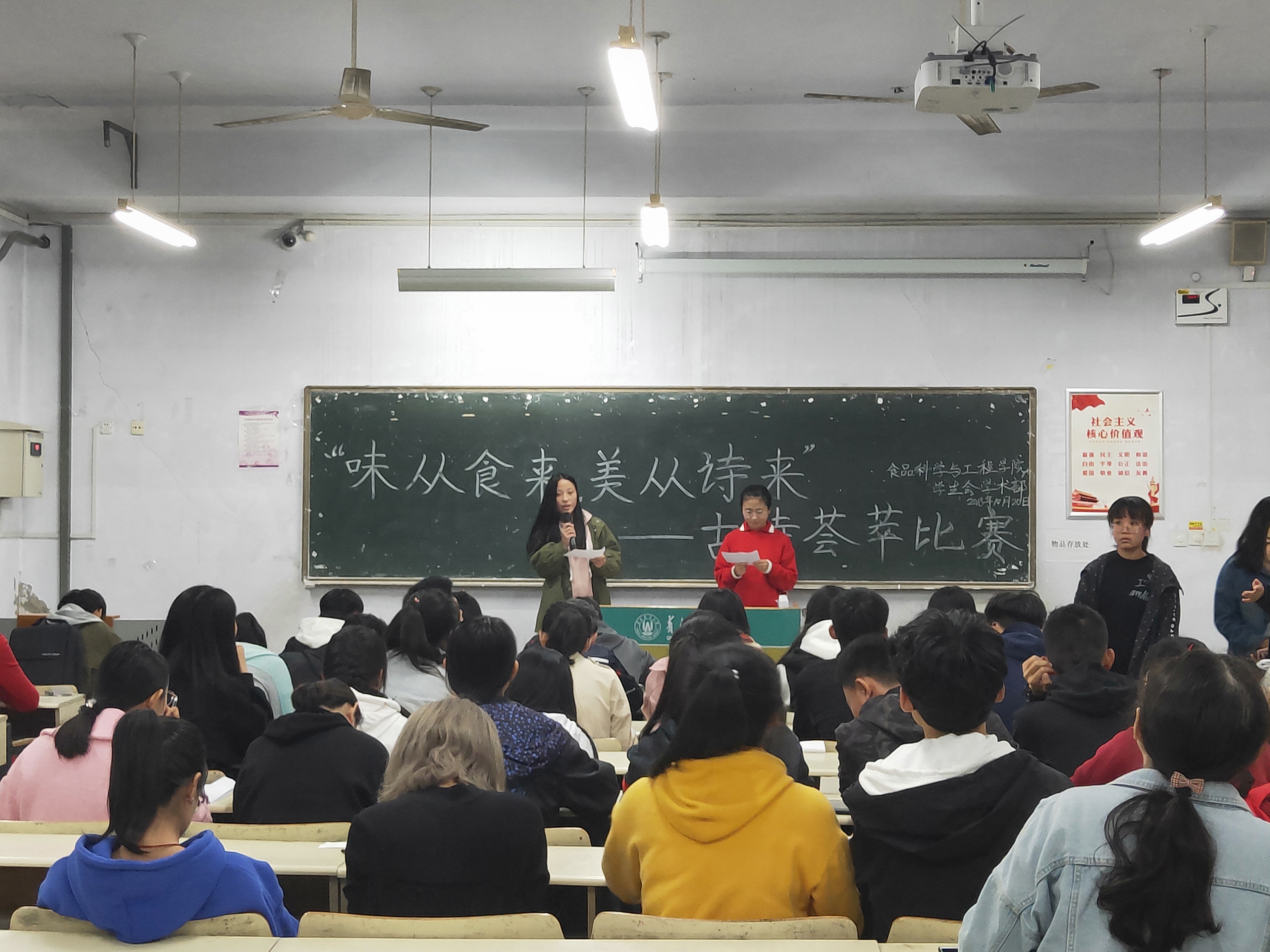 10月20日,beat365在线体育官网于教学区举办“味从食来,美从诗来”古诗荟萃大赛,旨在弘扬中华民族传统文化,同时结合食品专业的专业特色,让同学们接受传统经典的洗礼,打造书香校园。本次竞赛共有“从心队”、“超越队”、“诗全诗美”等17支队伍参加。