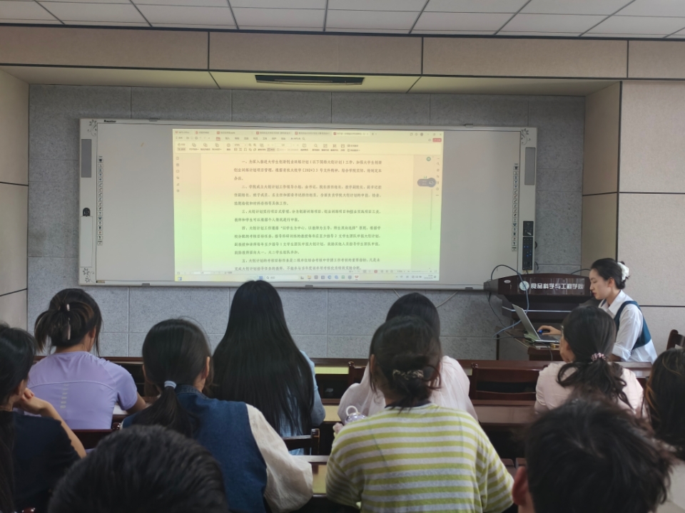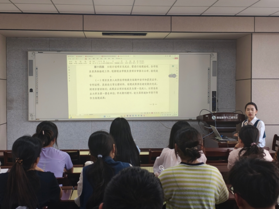 会上,于晓涵详细解读了大创结项要求。结合今年大创结题工作实例,她点明了几个容易出现问题的关键环节,比如关于“项目第一完成人”的准确定义与专利等证明材料的具体要求;针对不同等级项目的相关结题政策,带领大家进行了深入剖析。她特别谈到,参加特定的高水平学科竞赛并取得成绩,是大创项目结项的重要途径之一。她提醒同学们应未雨绸缪,提前规划,积极参与各类竞赛,如大学生生命科学竞赛、食品科技文化节系列比赛等,积累经验与成果。鼓励大家以赛促学、以赛促创,通过竞赛提升项目实践应用能力与创新水平。