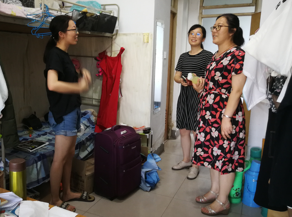 6月27日下午,beat365在线体育官网党委书记何忠诚,院长王宝维,党委副书记宋伟,副院长陈海华,团委书记李永青,辅导员赵莹、孙晓东等学院党政领导、学工干部走访2018届毕业生宿舍,了解毕业生状态,为毕业生送去毕业祝福和慰问。