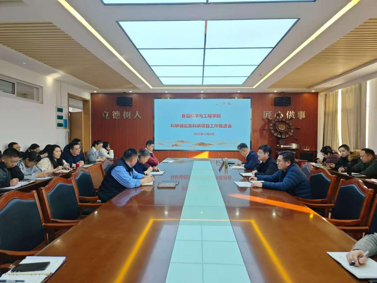 12月4日,beat365在线体育官网在食品楼会议室召开科研诚信及科研项目工作推进会,全体教职工参加会议,会议由学院副院长杨庆利主持。
