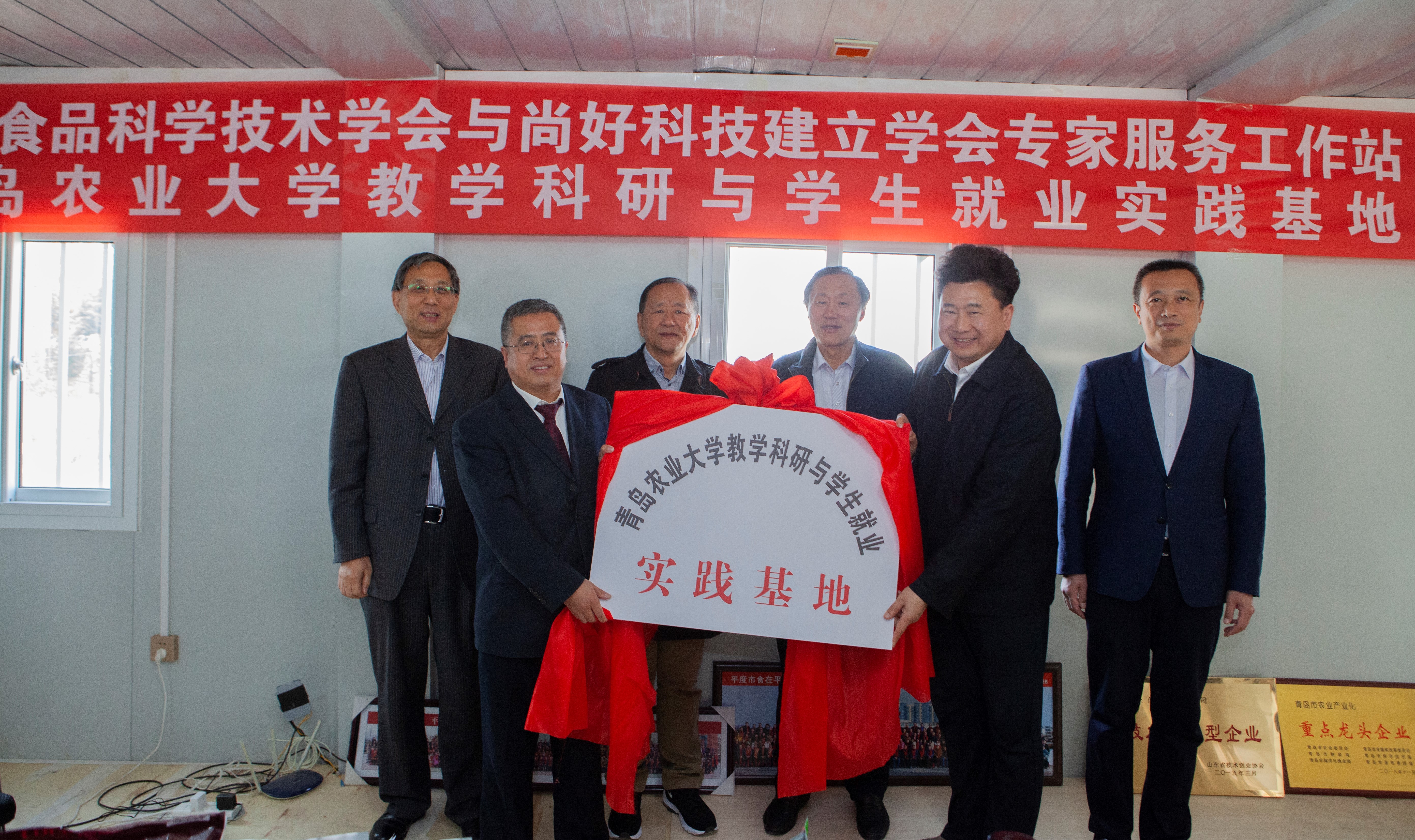 青岛市科学技术协会副主席、二级巡视员王军教授,青岛市食品科学技术学会理事长、食品学院教授王宝维,平度市政协王珂木副主席,尚好科技有限公司执行董事郁东兴,食品学院副院长孙庆杰教授共同为教学科研基地揭牌。