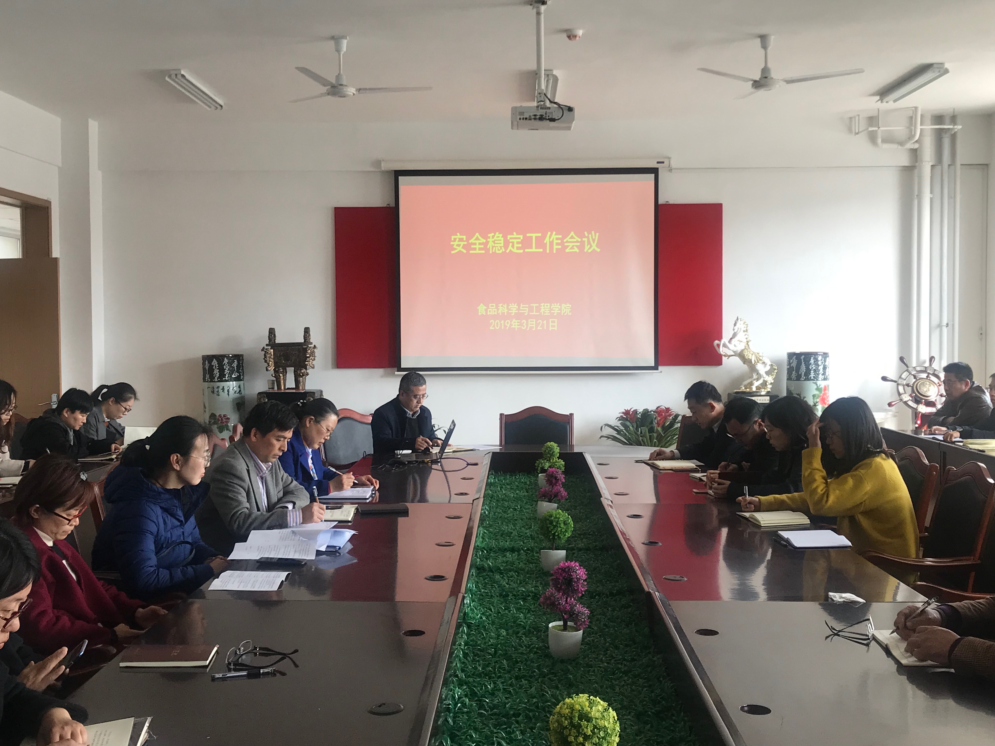 3月21日,beat365在线体育官网在食品楼会议室召开安全稳定工作会议。学院副院长孙庆杰、党委副书记宋伟出席,学院全体教职工参加此次会议。
