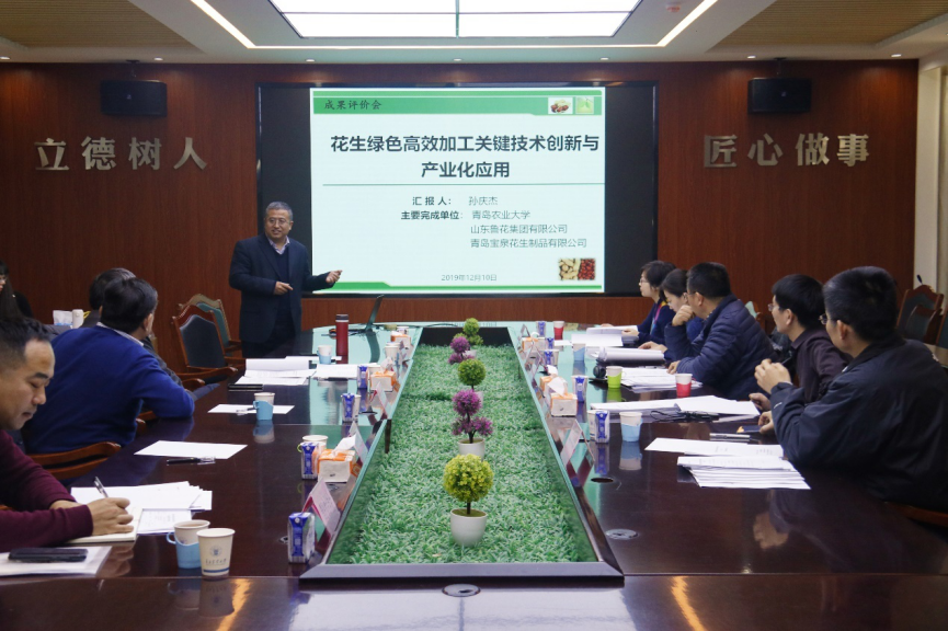 为促进青岛市及周边地区食品产业不断创新和发展,合理评价食品科技成果的质量和水平,加快食品科技成果的推广应用,12月10日,青岛食品科学技术学会组织相关专家对青岛农业大学等单位完成的“花生绿色高效加工关键技术创新与产业化应用”成果进行了会议评价。青岛市食品科学技术学会理事长王宝维教授主持了本次科技成果评价工作。邀请青岛大学魏玉西教授、青岛科技大学解万翠教授、中国科学院青岛生物能源与过程研究所李朝旭研究员、山东省农科院花生研究所孙杰研究员以及青岛大学王方亮教授等5位专家组成评价专家组。