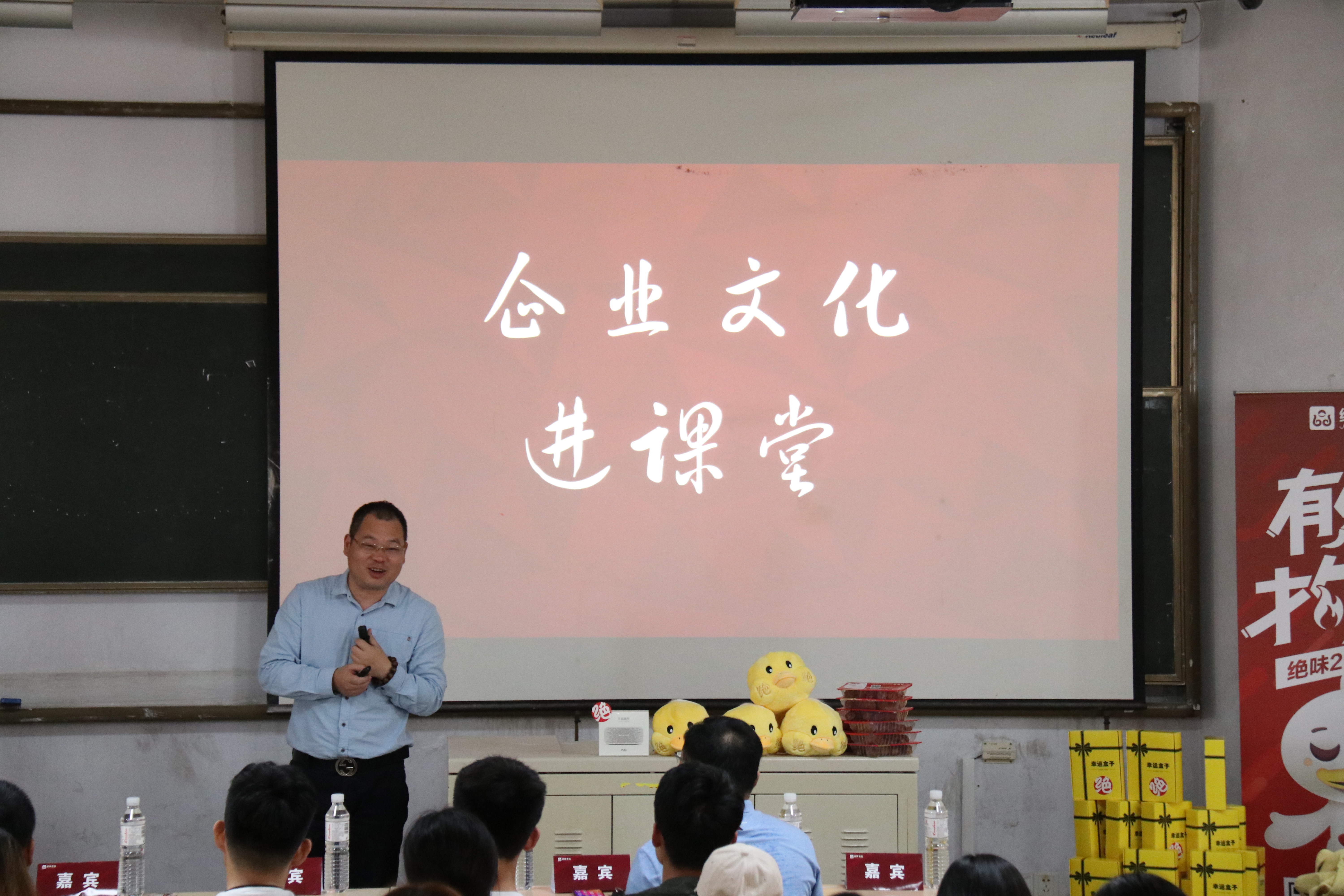 5月19日,应beat365在线体育官网邀请,绝味食品股份有限公司副总经理兼综合支持中心总监刘全胜在教学区为学院第四届创新创业商务培训班学员授课,学院团委书记李永青与培训班学员共同参加。