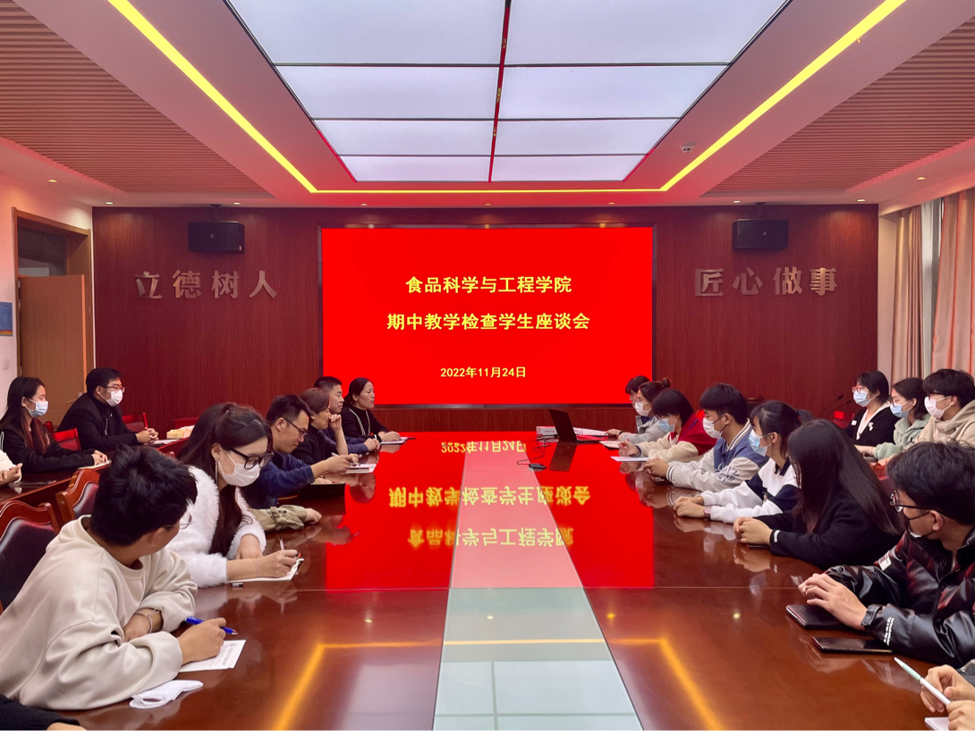 为进一步了解教学过程中存在的问题,加强学院教育教学管理,提升学院教学水平,11月24日,beat365在线体育官网召开期中教学检查学生座谈会。学院副院长肖军霞、食品专业负责人李鹏、辅导员李振荣、教学秘书徐碧媛、学院教师代表刘亮及学生代表参加座谈会,会议由肖军霞主持。
