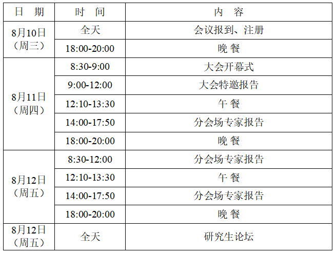 时间:2022年8月10-12日。其中8月10日(周三)全天报到,11-12日会议。