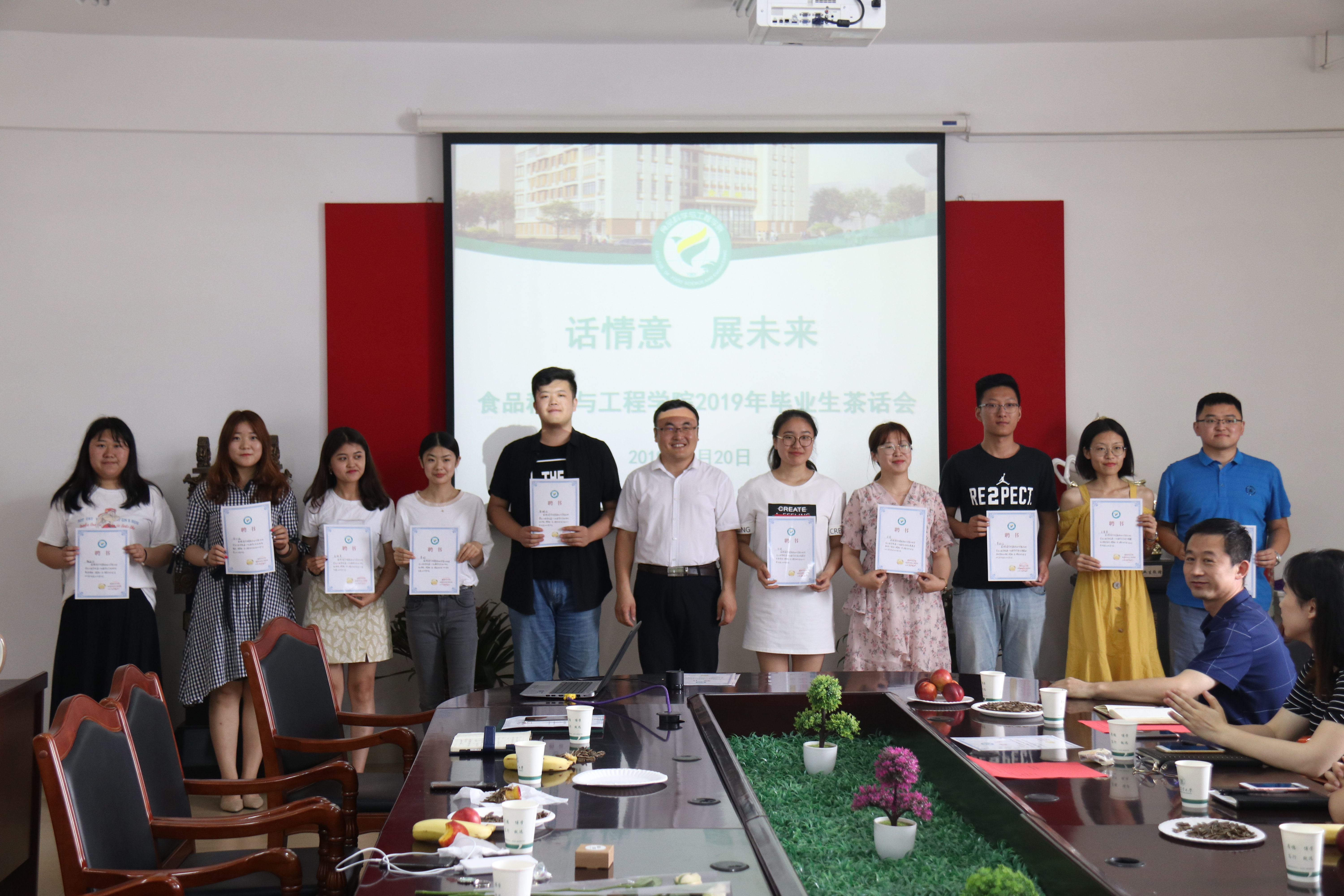 6月20日,beat365在线体育官网于食品楼举办“话情意、展未来”毕业生茶话会。学院党委副书记宋伟,团委书记李永青,辅导员赵莹、孙晓东、江巧宁以及学院第25届、第26届学生会主要学生干部参会。