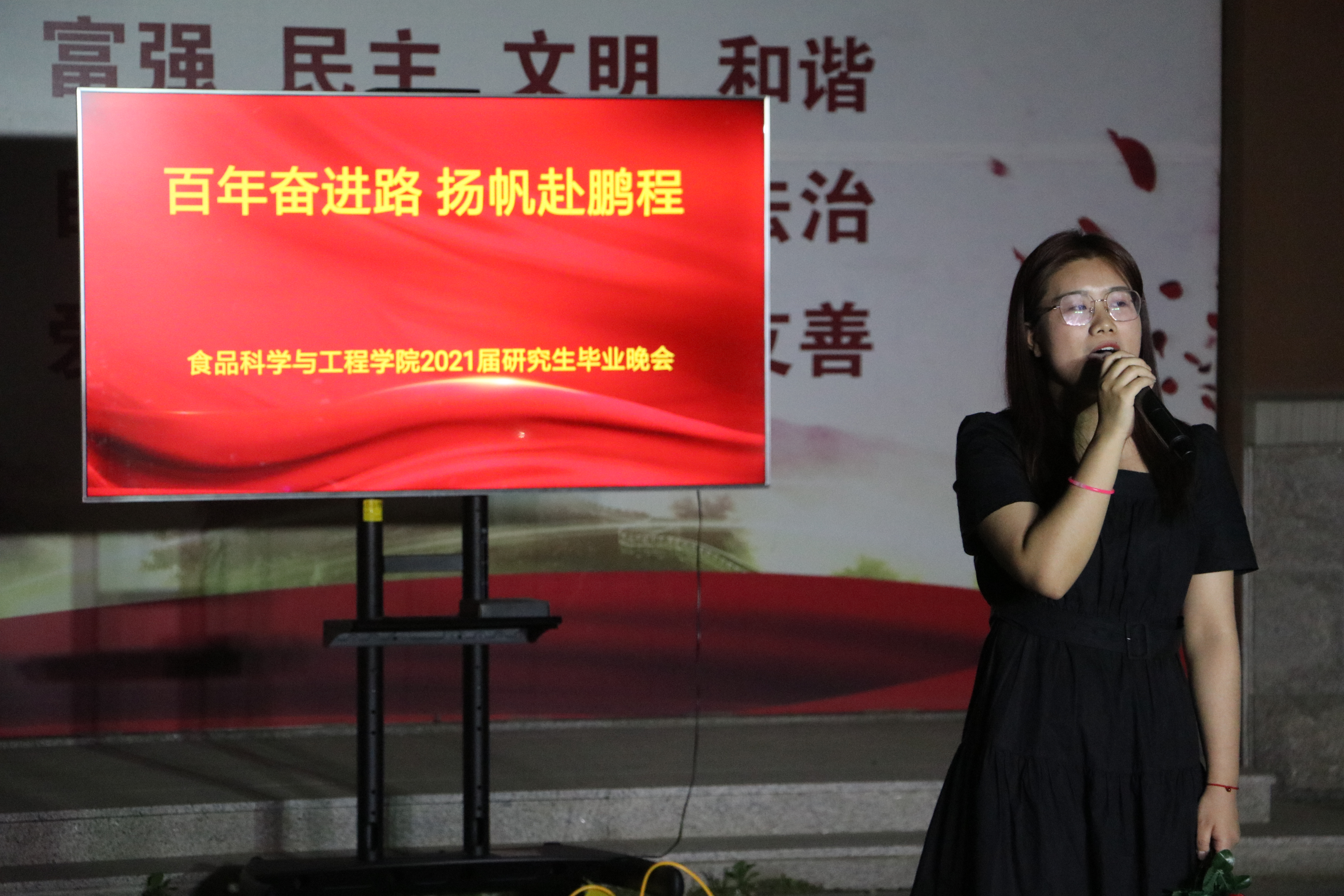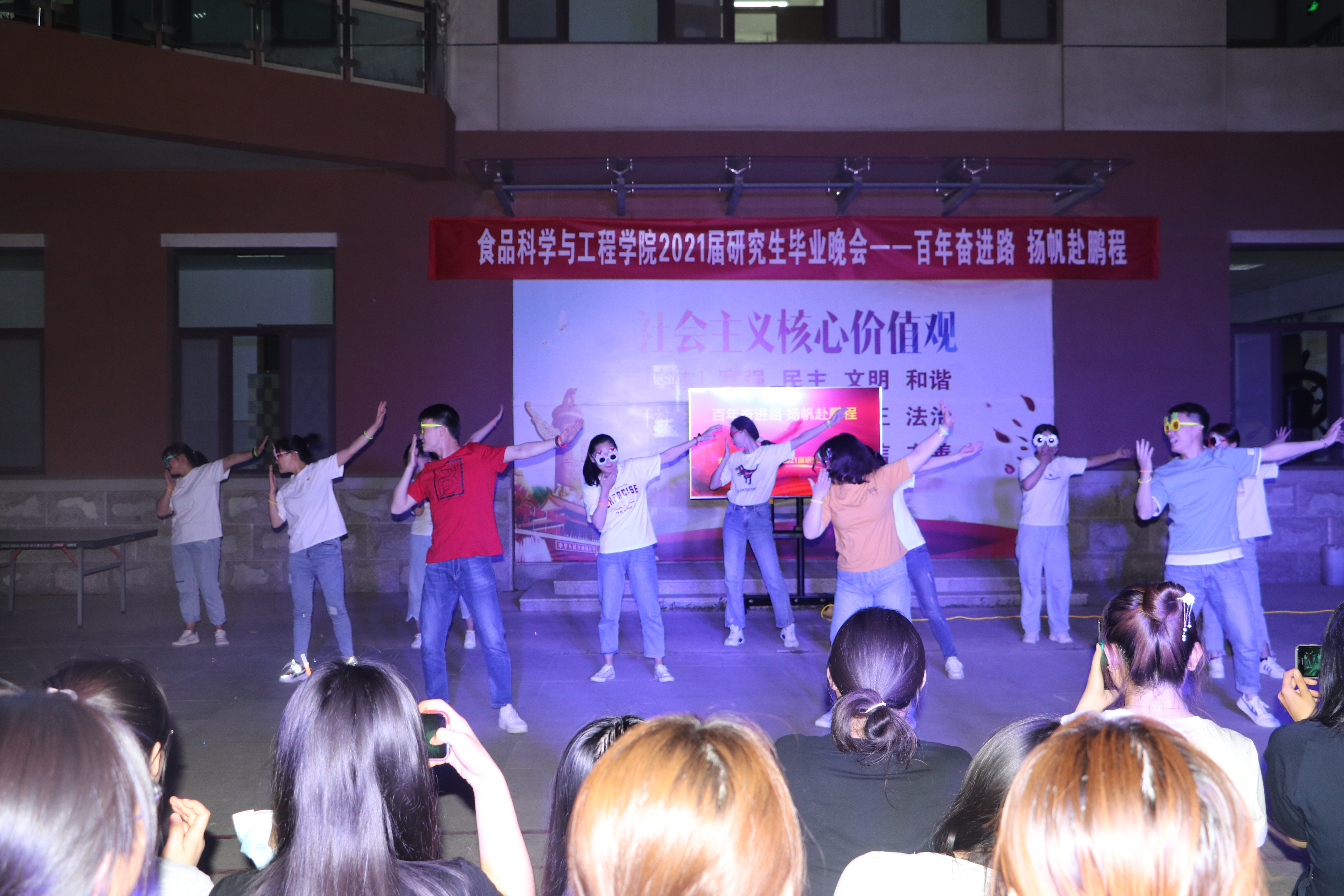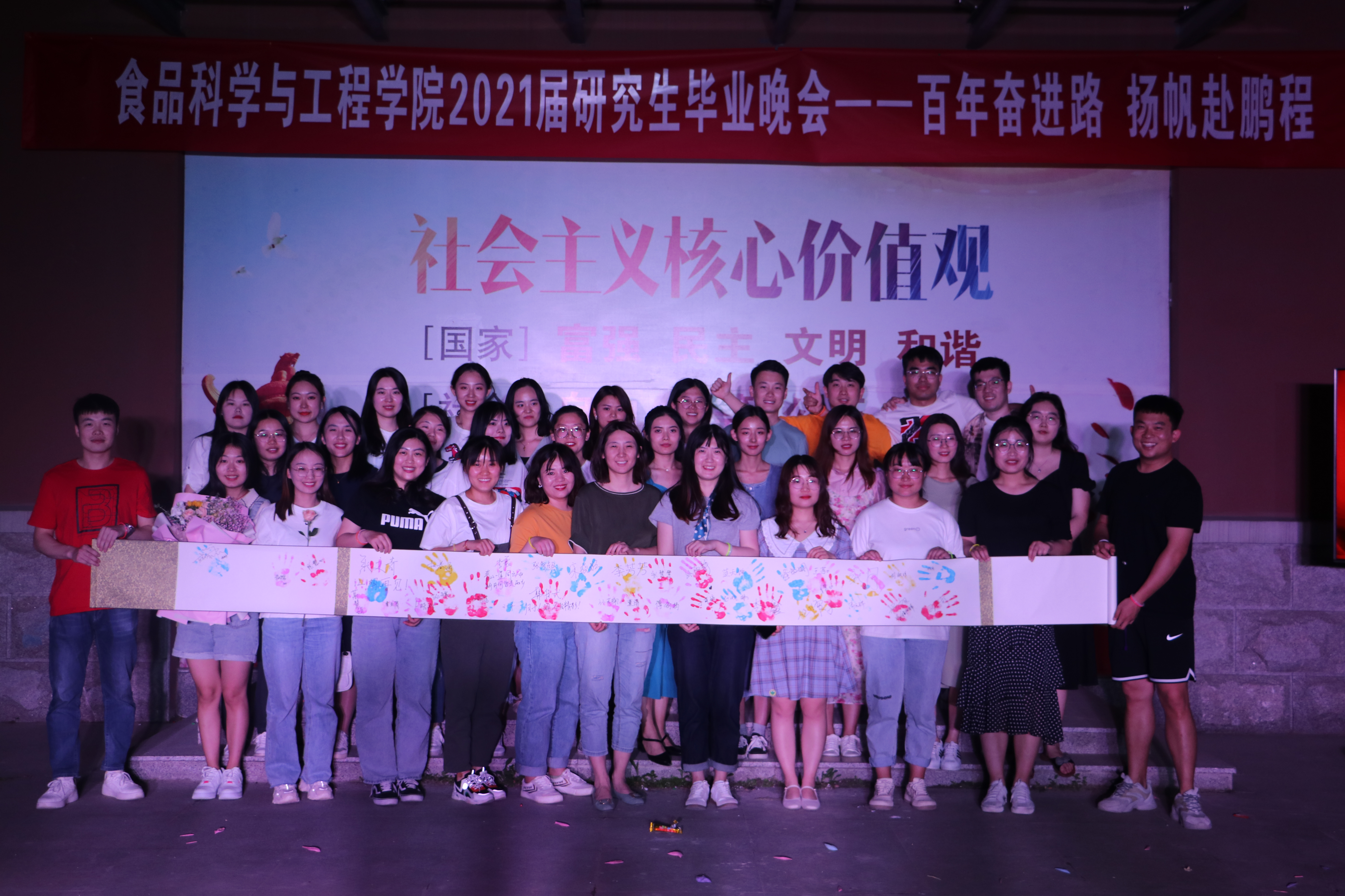 6月6日,beat365在线体育官网于食品楼小广场举办“百年奋进路,扬帆赴鹏程” 2021届研究生毕业晚会。食品学院辅导员、全体研究生共同观看了晚会。