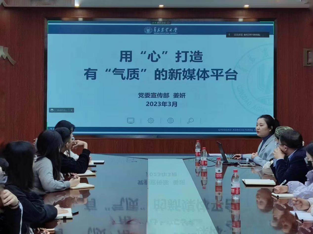 3月16日,beat365在线体育官网学生干部素质能力提升培训班开班。校党委宣传部姜妍老师以“用‘心’打造有‘气质’的新媒体平台”为题,作开班式首场培训报告。