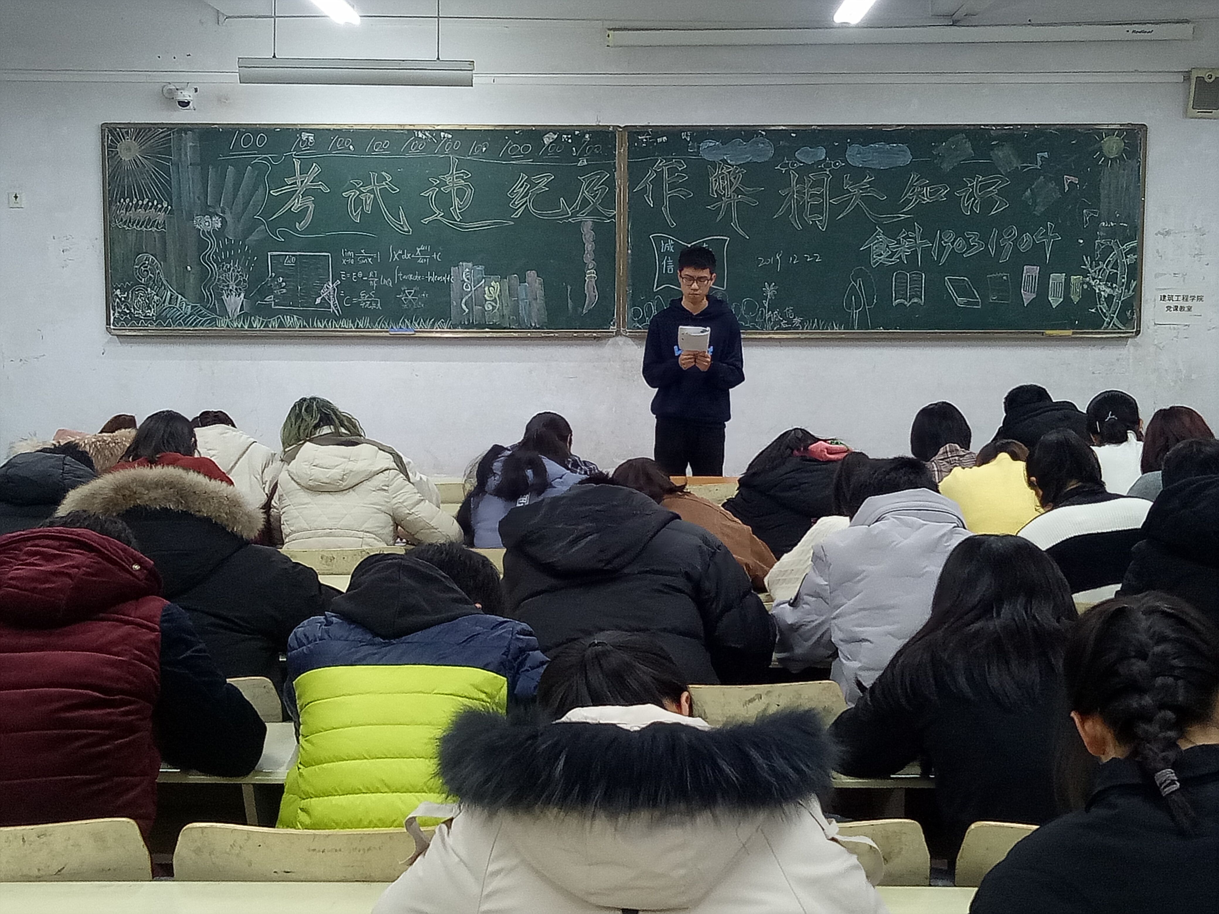12月22日,beat365在线体育官网于教学区开展“考试违纪及作弊相关知识”主题政治学习。2018级、2019级全体学生参加。