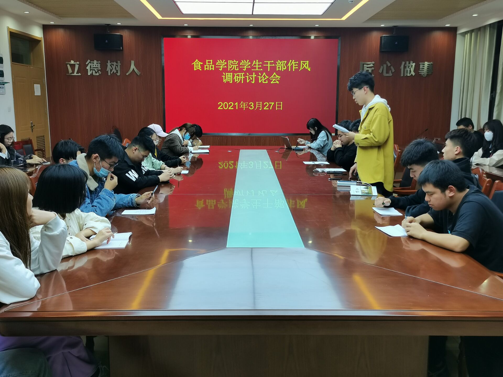 本次会议让学生干部了解了自己工作方面的不足,提升了学生干部整体的工作能力与工作作风,使得各学生干部能够以更好的精神风貌服务学生,奉献自我。