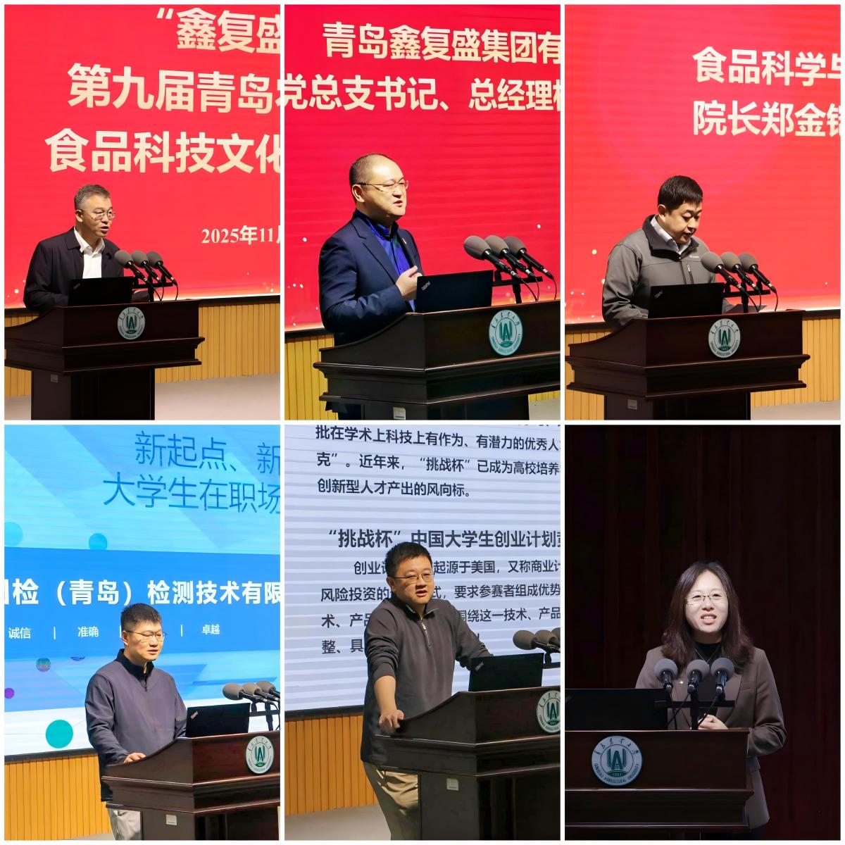 11月7日,“鑫复盛杯”第九届青岛农业大学食品科技文化节在学术会馆开幕。beat365在线体育官网党委书记、特种食品研究院副院长车广杰主持开幕式,食品学院院长郑金铠教授致开幕辞,青岛鑫复盛集团党总支书记兼总经理杨仕真,2005届校友、华测检测集团食品产品线总经理张婵,2009届校友、国检(青岛)检测技术有限公司总经理傅鹏,青岛科技大学校团委科创部部长、挑战杯办公室主任杨奉儒等出席开幕式。