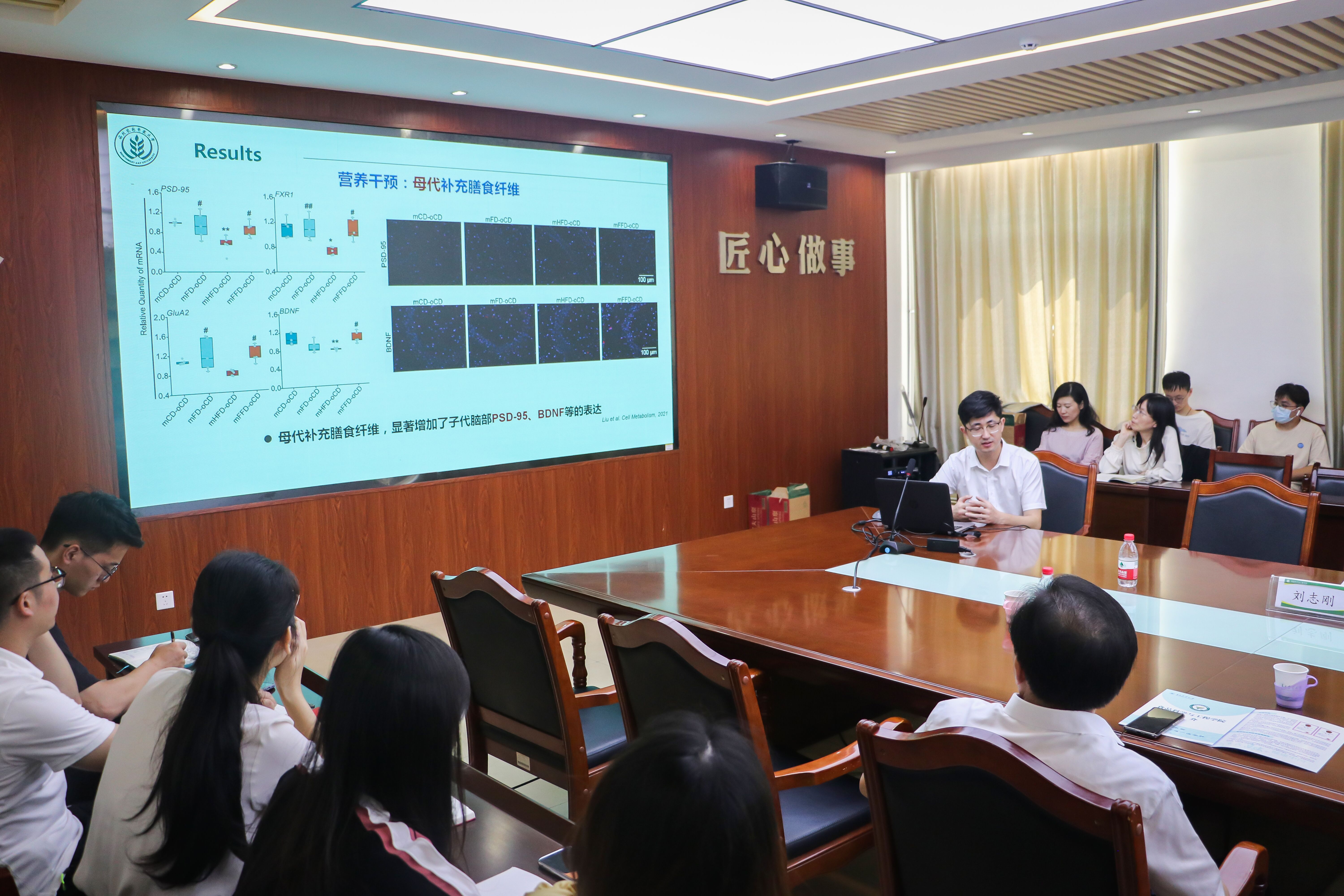 报告会上,刘志刚教授从国内外不同人群的肥胖状况、孕期肥胖对子代影响及其影响机制、孕期膳食纤维干预对子代的影响等方面进行讲解,并通过实验研究证明,母代肥胖会引起子代认知功能和学习功能下降,膳食纤维干预可以改善母代肥胖引起的子代神经发育问题。此次报告为食品营养功能组分发掘、功效评价及改善健康作用机制的发展注入了新生力量,参与学术报告的师生也受益匪浅。