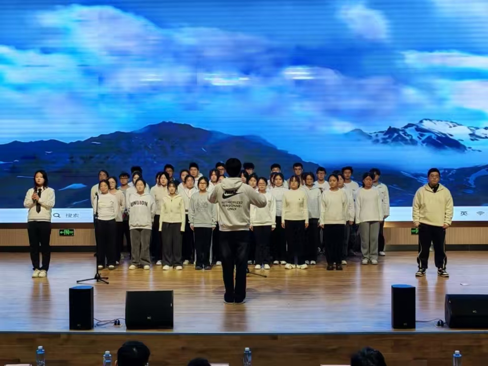 比赛现场,7支参赛队伍着装整齐,依次登台演唱《我和我的祖国》《少年中国说》等经典爱国歌曲。以旋律串联起一条壮丽长河,借深情演唱,感慨先辈奋斗之不易,展现青年继往开来之壮志。