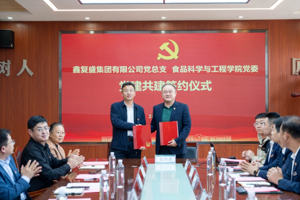 学院党委书记车广杰与鑫复盛集团党总支书记杨仕真共同签署结对共建协议书。双方商定,以党建共建为契机,以党建引领促发展为主题,锚定产、学、研、用深度融合目标,本着“资源互补、优势互补、注重实效”的原则,梳理党建资源,搭建共享平台,发挥双方党组织和党员作用,通过组织联建、党建互通、业务融合、共解难题等途径,探索“以共建促党建,以党建促发展”的校企共建共享发展模式,携手激发基层党建活力,切实把党建联建共建优势转化为推动双方事业高质量发展成效。仪式上,食品学院3个教师党支部也分别与鑫复盛流亭党支部、礼记党支部、逸海党支部确立了结对共建。