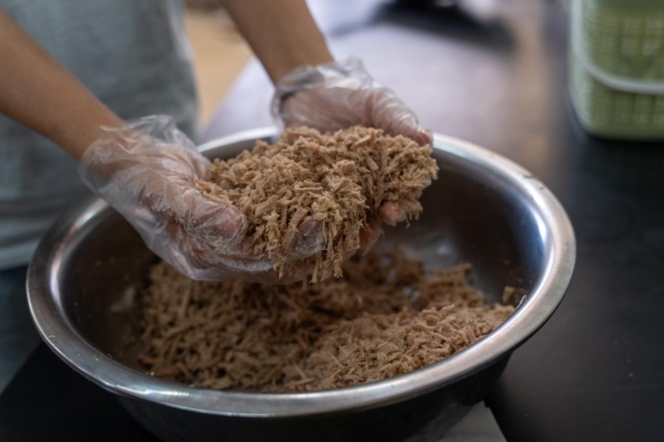 为全面提升大学生实践能力与劳动素养,传承传统食品制作技艺,感悟节气文化内涵,6月4日,由beat365在线体育官网承办的“小满制松——手作肉松体验・感悟节气文化与劳动之美”主题劳动实践活动在食品楼212举办,15名本科生、研究生参加活动,食品学院食品科学与工程系主任李鹏老师现场指导学生在动手实践中感受劳动创造的魅力。