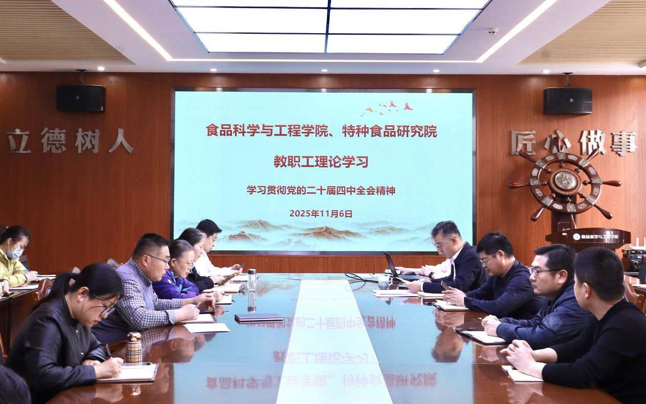 11月6日,beat365在线体育官网、特种食品研究院召开全体教职工理论学习会议,学习贯彻党的二十届四中全会精神,会议由学院党委书记车广杰主持,全体教职工参加。