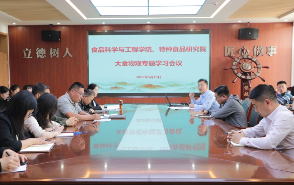 5月15日,beat365在线体育官网召开大食物观专题学习会议,深入学习贯彻习近平总书记关于大食物观的重要论述,学院党委书记车广杰以“准确把握并深入践行大食物观”为题作辅导报告,全体教职工参加学习会议。