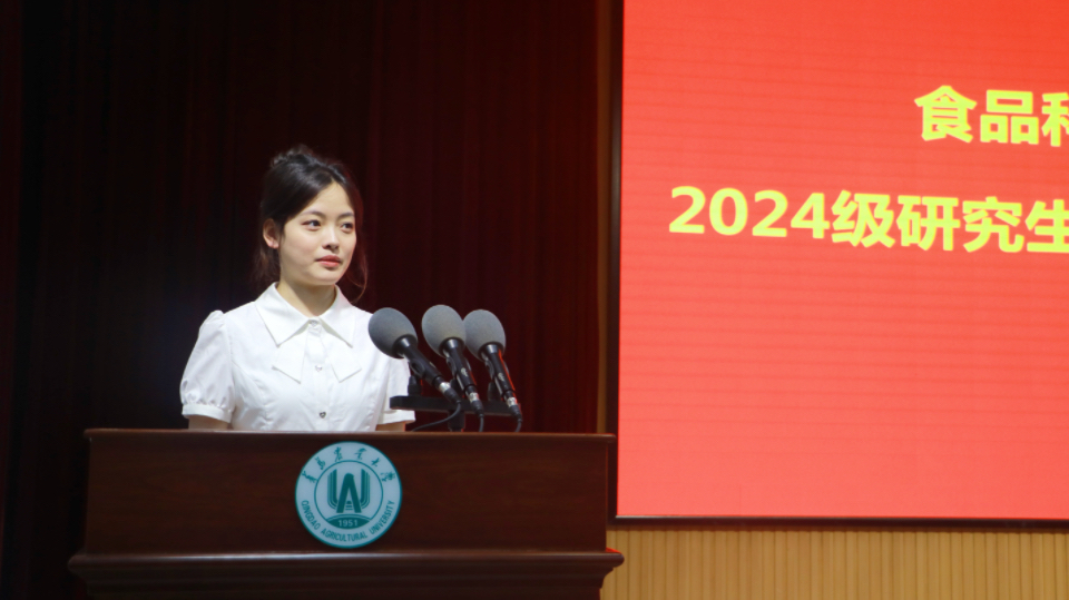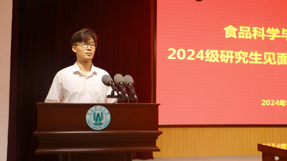 2024级新入学研究生代表王文慧向大家分享了自己对于研究生生活的期待,并立志成为“有理想,敢担当,能吃苦,肯奋斗”的新时代好青年。同时也希望通过自己的努力,在科研路上稳步前进,争做“食代先锋”。